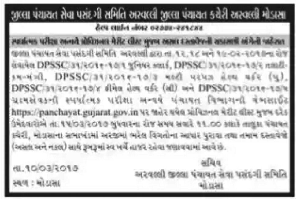 DPSSC Aravalli Talati cum Mantri, Junior Clerk, Gram Sevak, MPHW & FHW Document Verification Notification 2017
