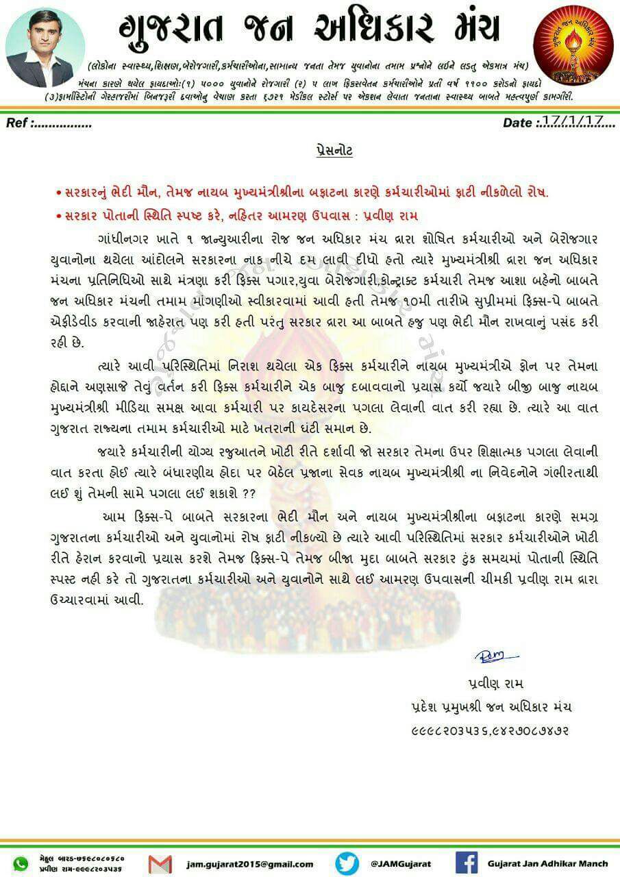 Fix Pay Related important News : Gujarat Jan Adhikar Manch January 18, 2017 by Gujarati Education Fix Pay Related important News : Gujarat Jan Adhikar Manch Fix Pay Related News Fix Pay Related important News : Gujarat Jan Adhikar Manch News Report : Click Here for News Report આ પણ વાંચો Fixed Pay Mate Sarkar Dwara Pagar Vadharo Ane Anya Jaherato By Akila News