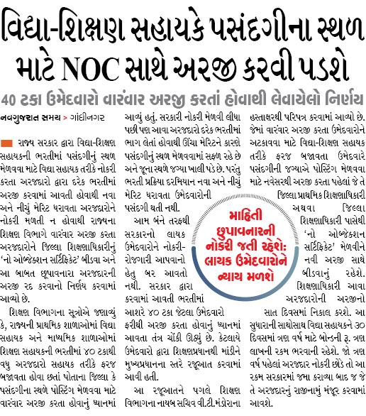 - Vidyasahayak-Shikshansahayak Pasandgi na Sthal mate NOC sathe arji karvi Padshe
